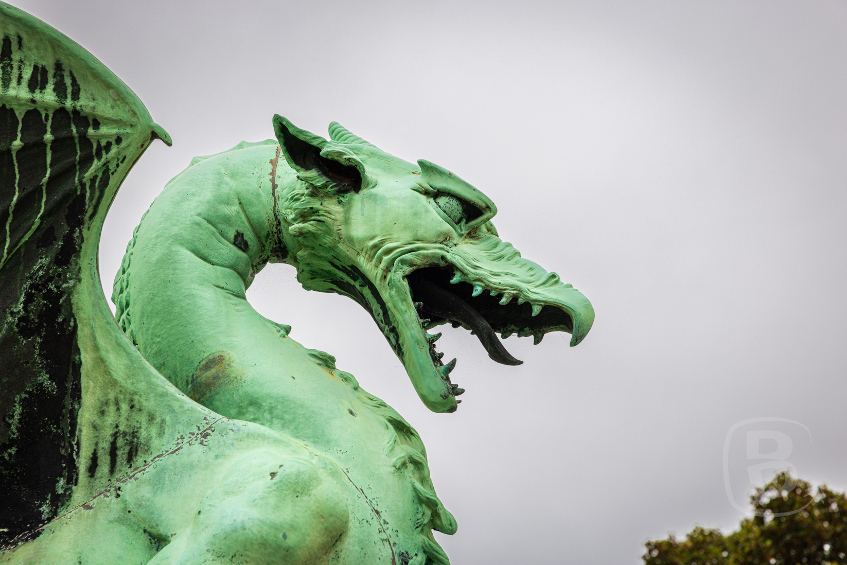 Slowenien/Ljubljana | Statue auf der Drachenbrücke
