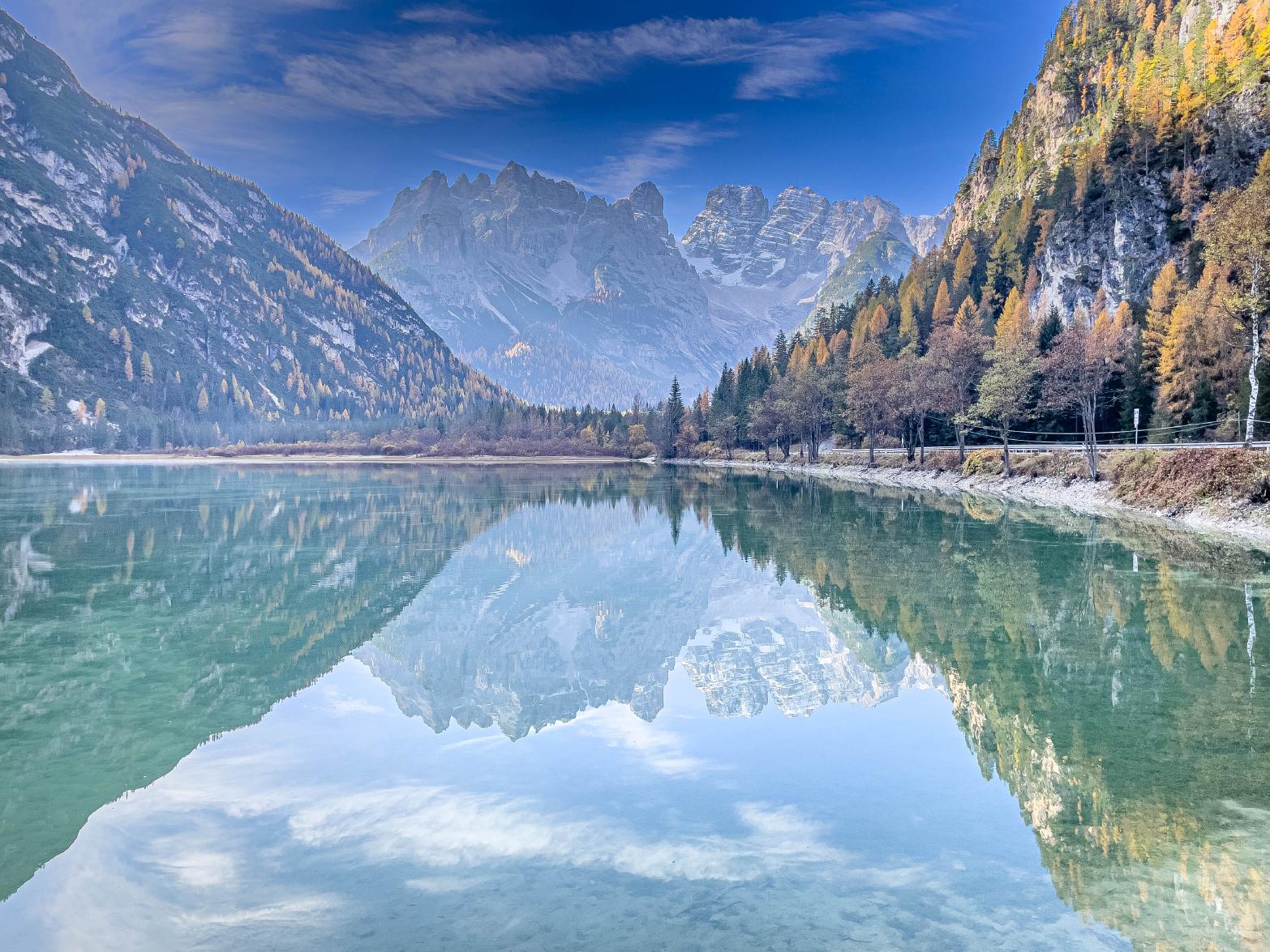 Weiter geht es zum Misurinasee. Fotos machen wir aber erst am Panoramapunkt Drei Zinnen.
