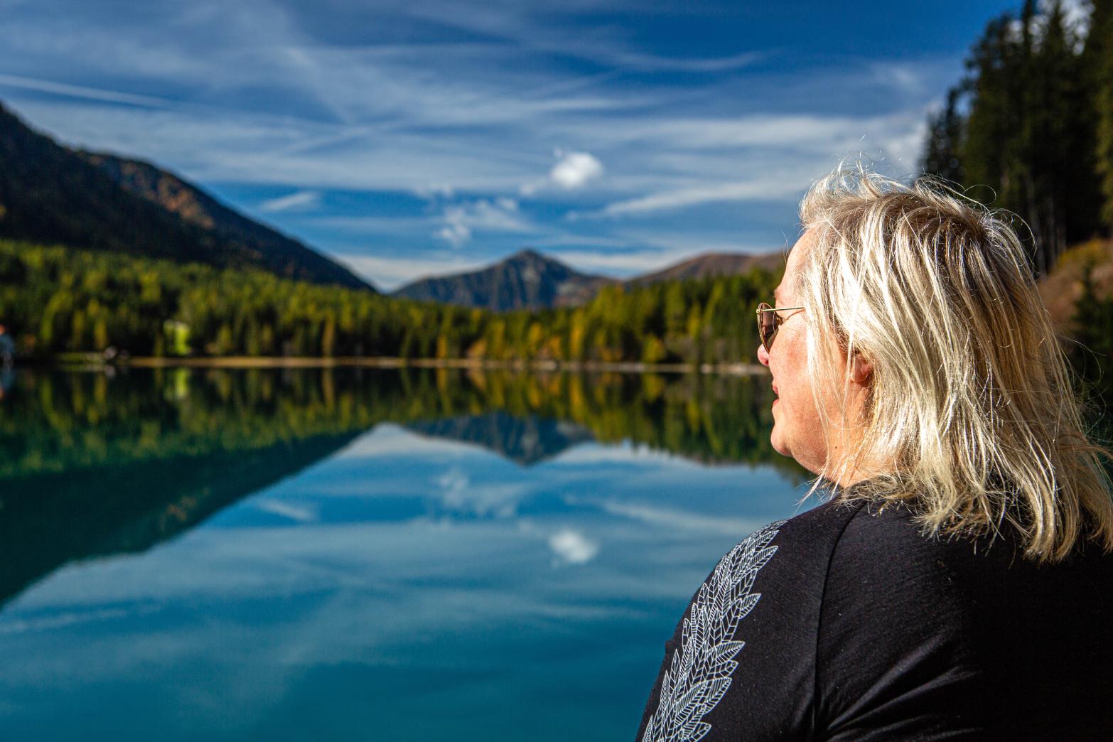 Wir fahren aber nicht die normale Straße sondern nehmen den kleinen Umweg über den Lago di Misurina. Hier gibt leider keine Spiegelungen, da es zu windig ist.