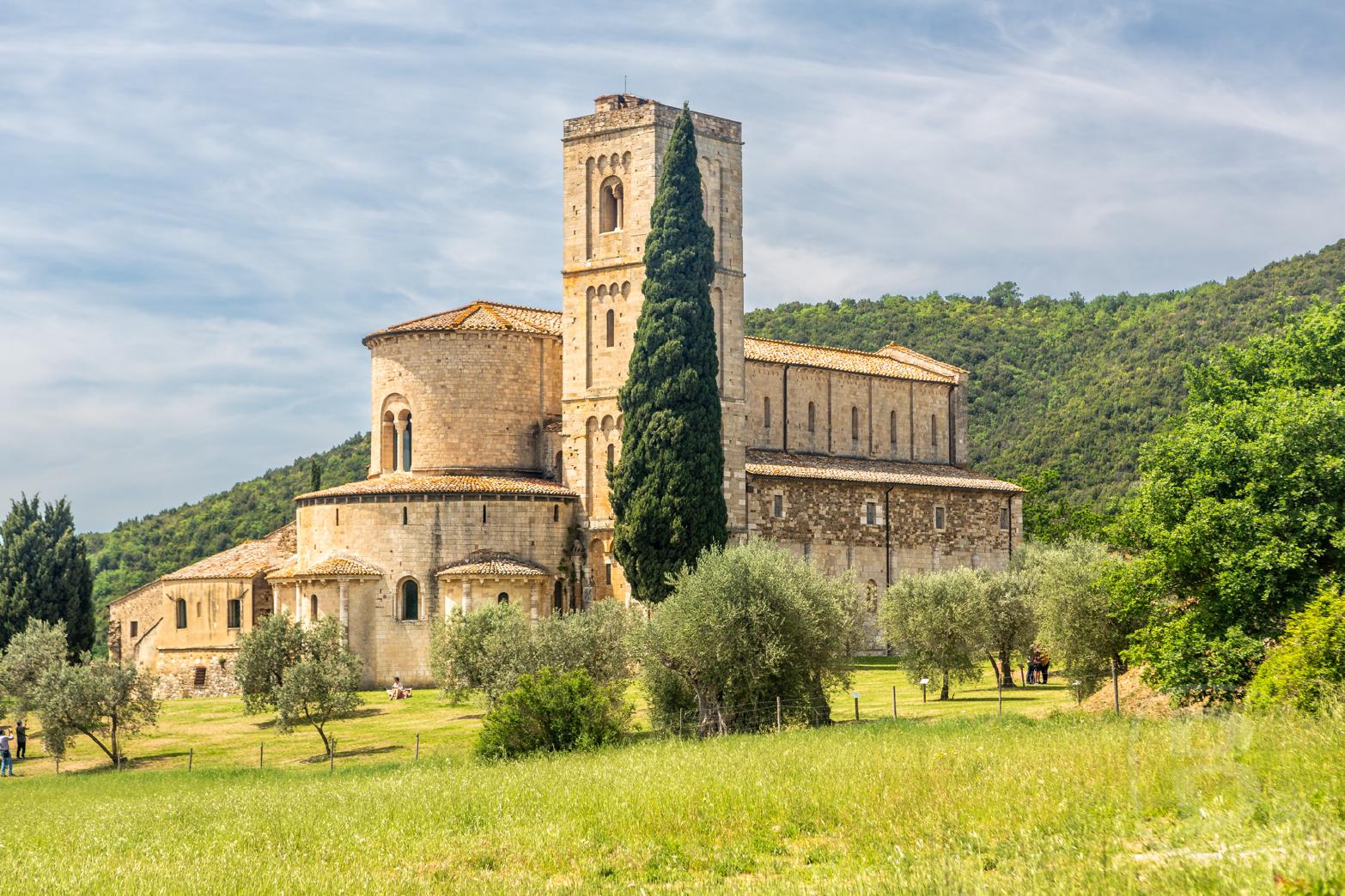 Zurück zum Auto und das nächste Ziel angesteuert: Abbazia di Sant’ Anotimo. Auch hier finden wir auf Anhieb einen guten Parkplatz. Schatzti geht noch schnell einen Parkschein ziehen, der Gast vor ihr braucht leider geschlagene zehn Minuten, um dem Automaten einem Parkschein zu entlocken.