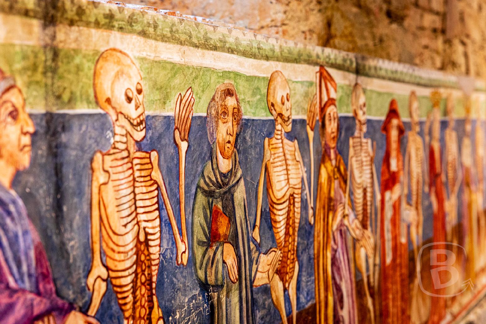 Nach dem Abstieg besichtigen wir die St. Georgs-Kapelle. Die Decke wurde 1747 mit den Wappen der Landeshauptleute bemalt.