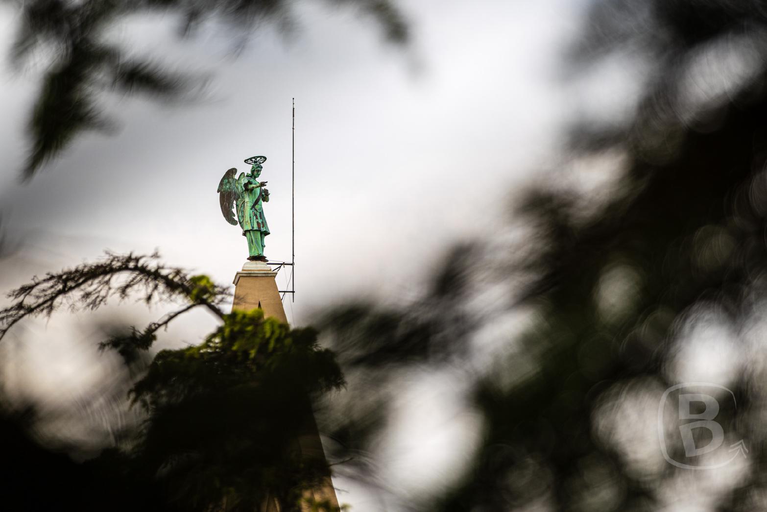 Auf dem Turm befindet sich die Statue vom Erzengel Michael, welche vor ein paar Jahren komplett restauriert wurde. Diesen Engel würde ich gerne fotografieren. Also suchen wir nach einem schönen Platz. Ich glaube, wir haben auch einen gefunden. Ich konnte mich nicht für ein Foto entscheiden.