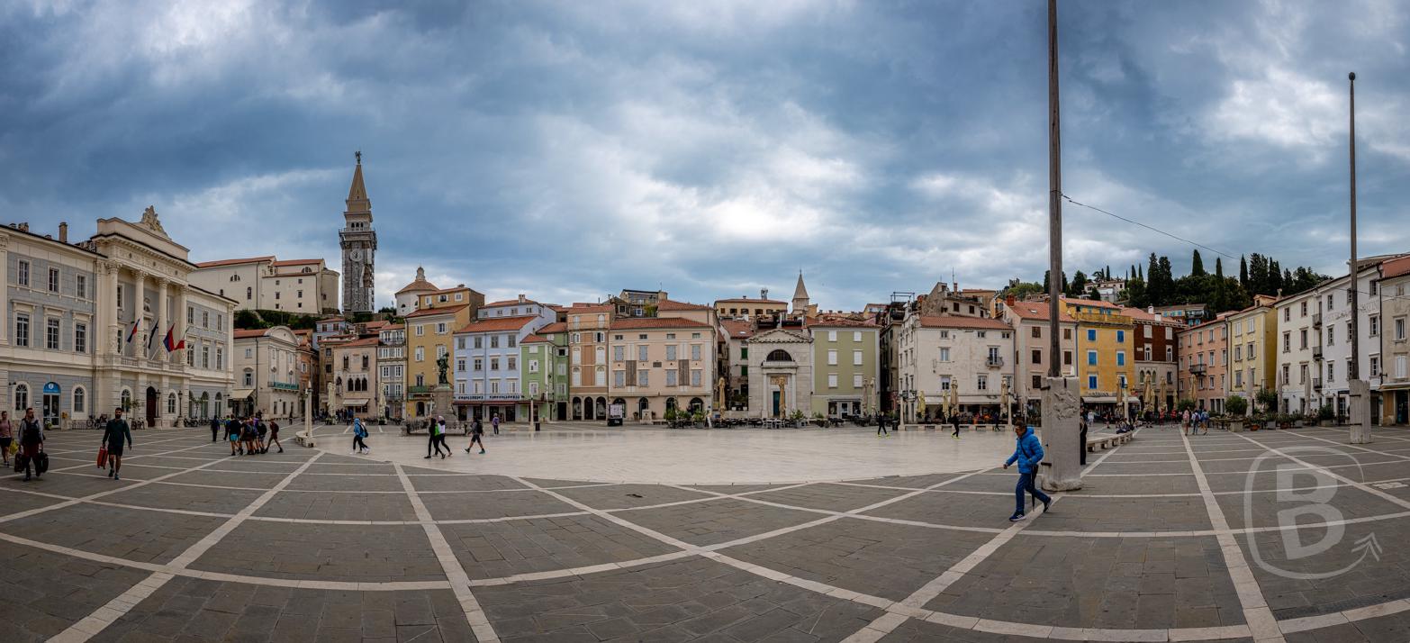 Wir laufen zurück zum Busbahnhof. Auf dem Weg kommen wir noch einmal am Tartini-Platz vorbei. Inzwischen ist auch die Sonne da.