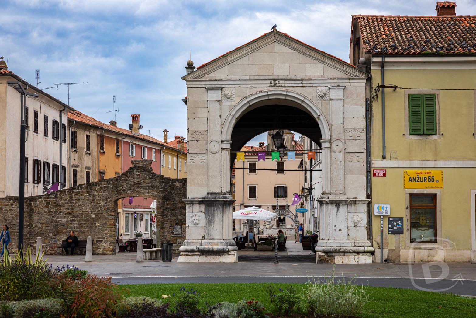 Wir gehen weiter zum Prešeren-Platz. Hier befindet sich das Muda-Tor, das ehemalige Stadttor und jahrhundertelang der einzige Zugang in die Stadt auf dem Landweg.