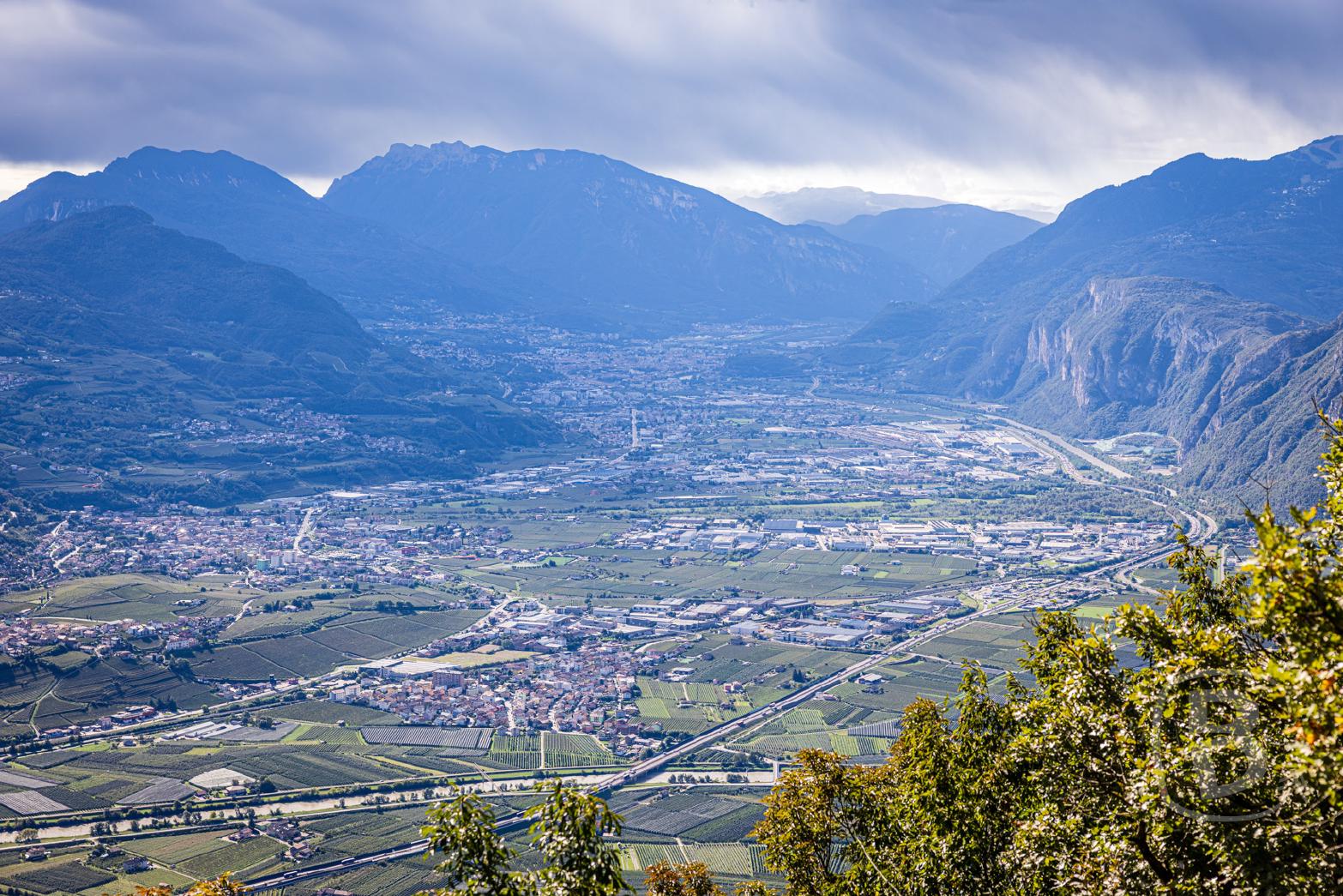 Bei Komoot haben wir eine kurze Wanderung herausgesucht. Die führt zu einem Aussichtspunkt, mit einem schönen Blick auf das Etschtal.