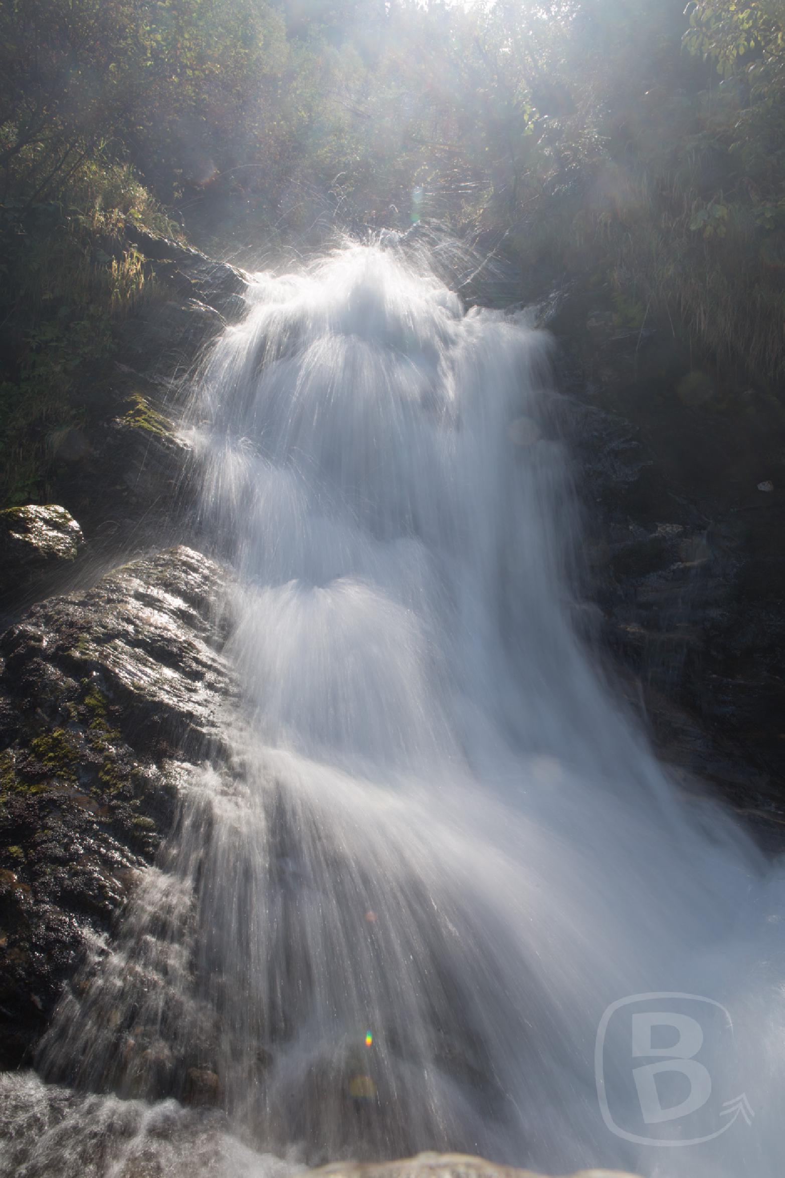Unterwegs kein Hinweis auf Ruhezeiten oder ähnliches. Ich werde den ortsansässigen Alpenverein zu einer Nachschulung entsenden: „Touristengerechtes-Ausschildern-Von-Wegen“. Wie wir jetzt so dumm rumstehen, beschließen wir auf dem Rückweg am unteren Wasserfall eine Pause einzulegen und unser Riegel zu essen.