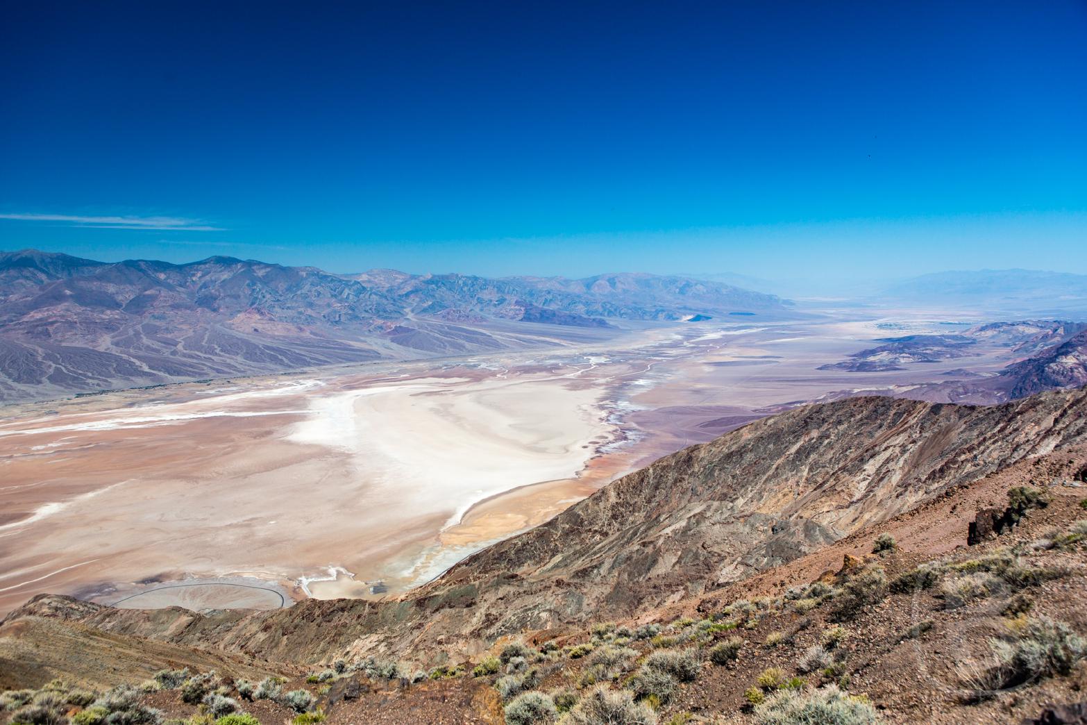 Im Death Valley angekommen, besuchen wir zuerst Dantes View. Von diesem Punkt - er liegt auf fast 1.700 Meter über Null – können wir das gesamte Tal des Todes überblicken.