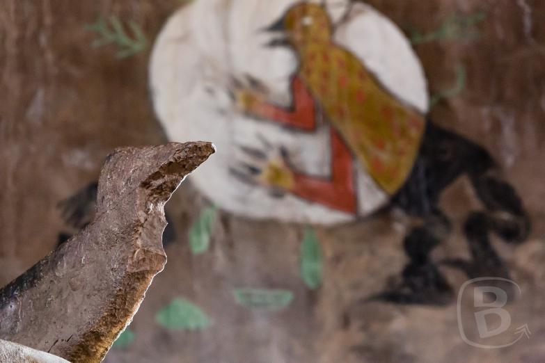 Zuerst gehen wir aber nach oben, bewundern die Aussicht und sehen uns die Wandmalereien an, die vom Hopi Künstler Fred Kabotie geschaffen wurden.