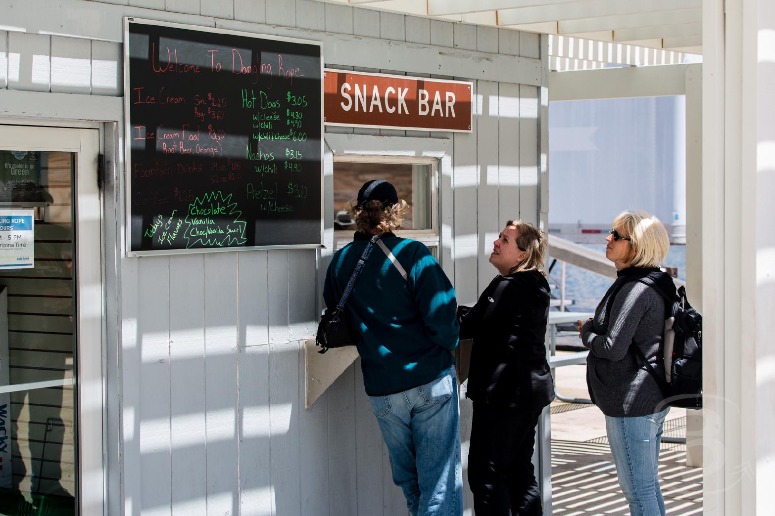 Der Wecker klingelt um 05:50 Uhr. Wir springen aus dem Bett und machen uns fertig. Wir müssen um 07:00 Uhr an der Lake Powell Marina sein, um unsere heutige Tour zu starten. Im Hotel beginnt das Frühstück aber erst um 06:30 Uhr. Zu spät, um dann noch pünktlich am Hafen zu sein. Also fahren wir in den Supermarkt, kaufen Sandwiches, Kaffee bei Starbucks und fahren zur Marina. Whaweap Marina.
