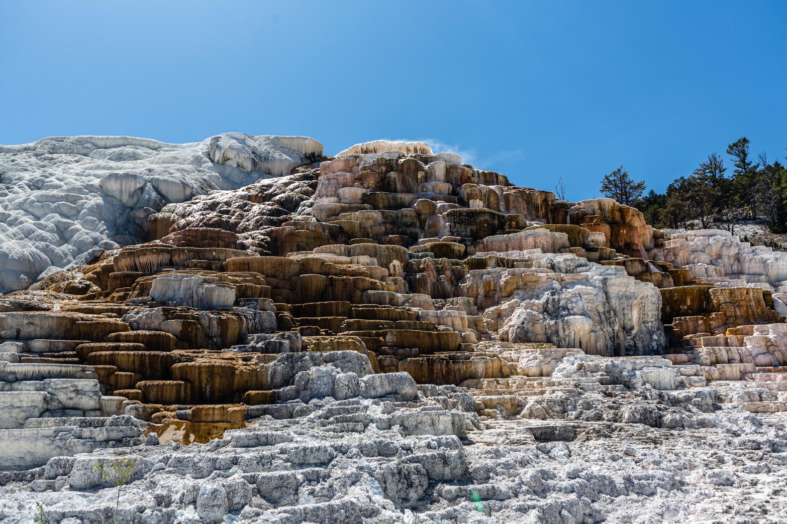 Nach unserem Essen gehen wir also zu der Hauptattraktion, der Lower Terraces Area. Direkt an der Straße steht der Liberty Cap. Dieser ist 11 Meter hoch und wurde von einer heißen Quelle erschaffen. Dieses dauerte mehrere 100 Jahre. Wann die Quelle versiegt ist, ist nicht bekannt.