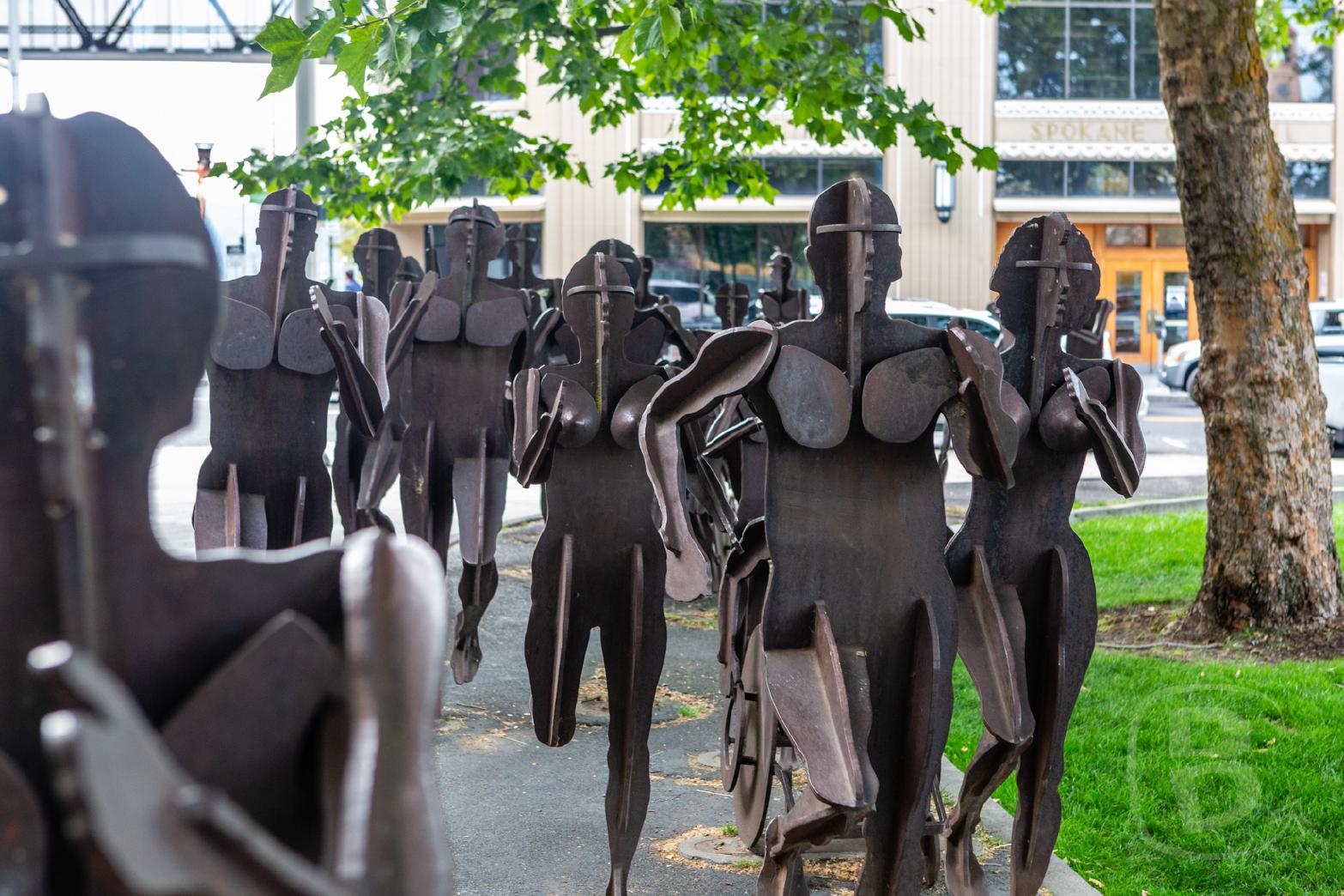 Als erstes erreichen wir ein Kunstwerk auf dem Spokane Falls Blvd. Es nennt sich The Joy Of Running Together und ist zu Ehren des jährlichen Spokane Bloomsday Run errichtet.