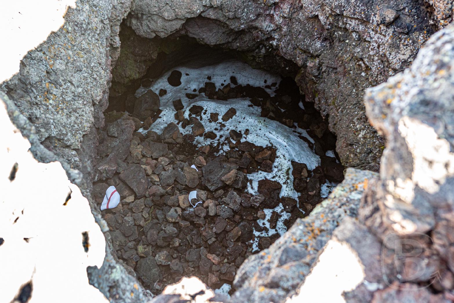 Dann geht es zur Snow Cone. Dieses Loch ist nur wenige Meter tief, aber immer bildet sich am Boden eine Eisschicht.
