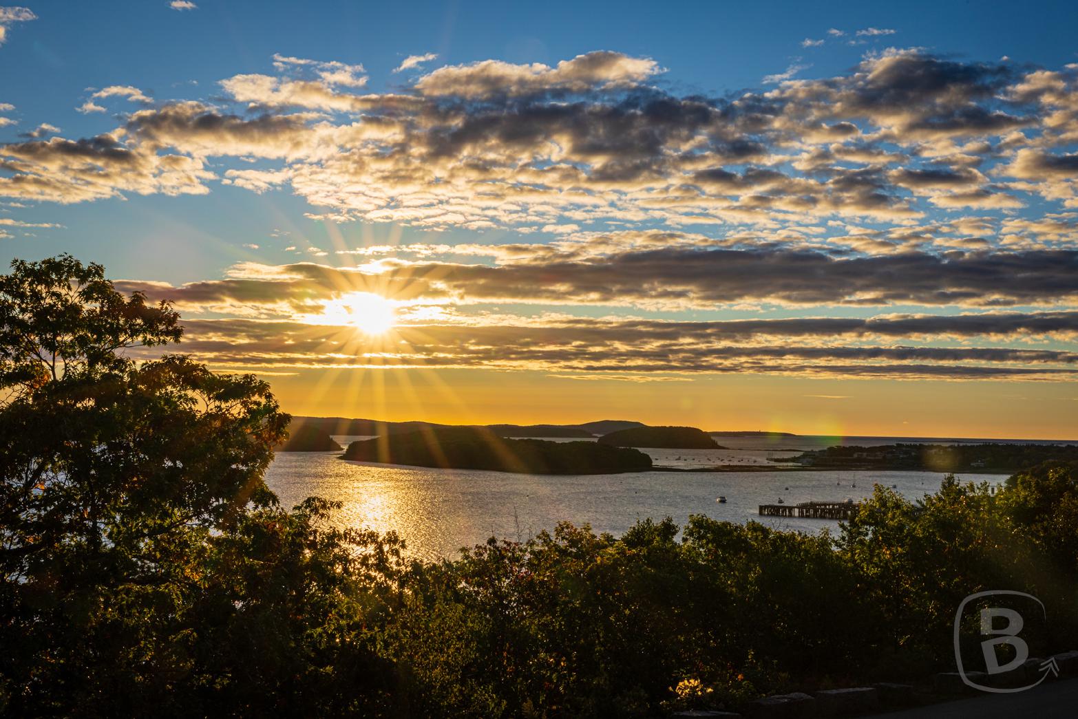 Wir fahren um 6:50 Richtung Cadillac Mountain und haben Karten für 7:30. Kurz hinter dem Hotel machen wir den ersten Halt. Hier gibt es einen schönen Sonnenaufgang über der Frenchman Bay.