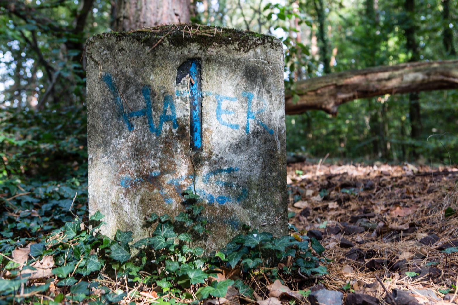 Wieder auf unserem Wanderweg entdecken wir am Wilmersdorfer Waldfriedhof die Reste von Panzersperren.