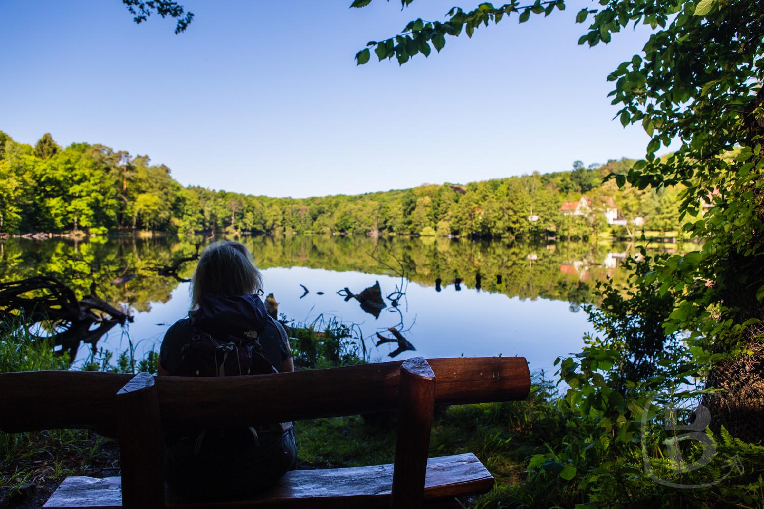 Wir finden direkt am Start der Tour einen Parkplatz. Hier befindet sich auch ein Bank, die direkt an der Günterquelle gelegen ist. Voller Vorfreude auf das Frühstück und einem frisch gebrühten Kaffee, packe ich den Koffer aus und will mit dem Zubereiten anfangen. Kaum, dass ich den Koffer geöffnet habe, werden wir bereits von unzähligen Mücken attackiert. An ein gemütliches Frühstück ist unter diesen Umständen nicht zu denken.