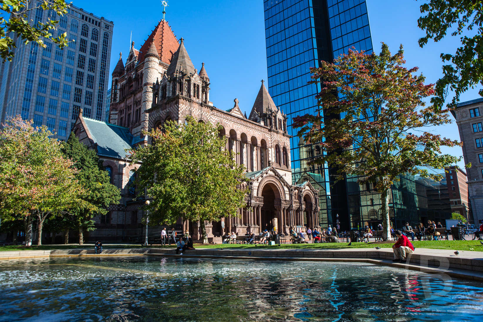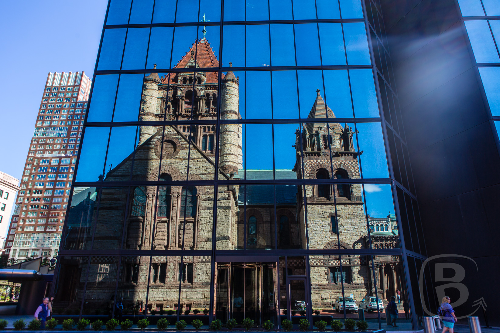 Boston | Die Trinity Episcopal Church spiegelt sich im John Hancock Tower