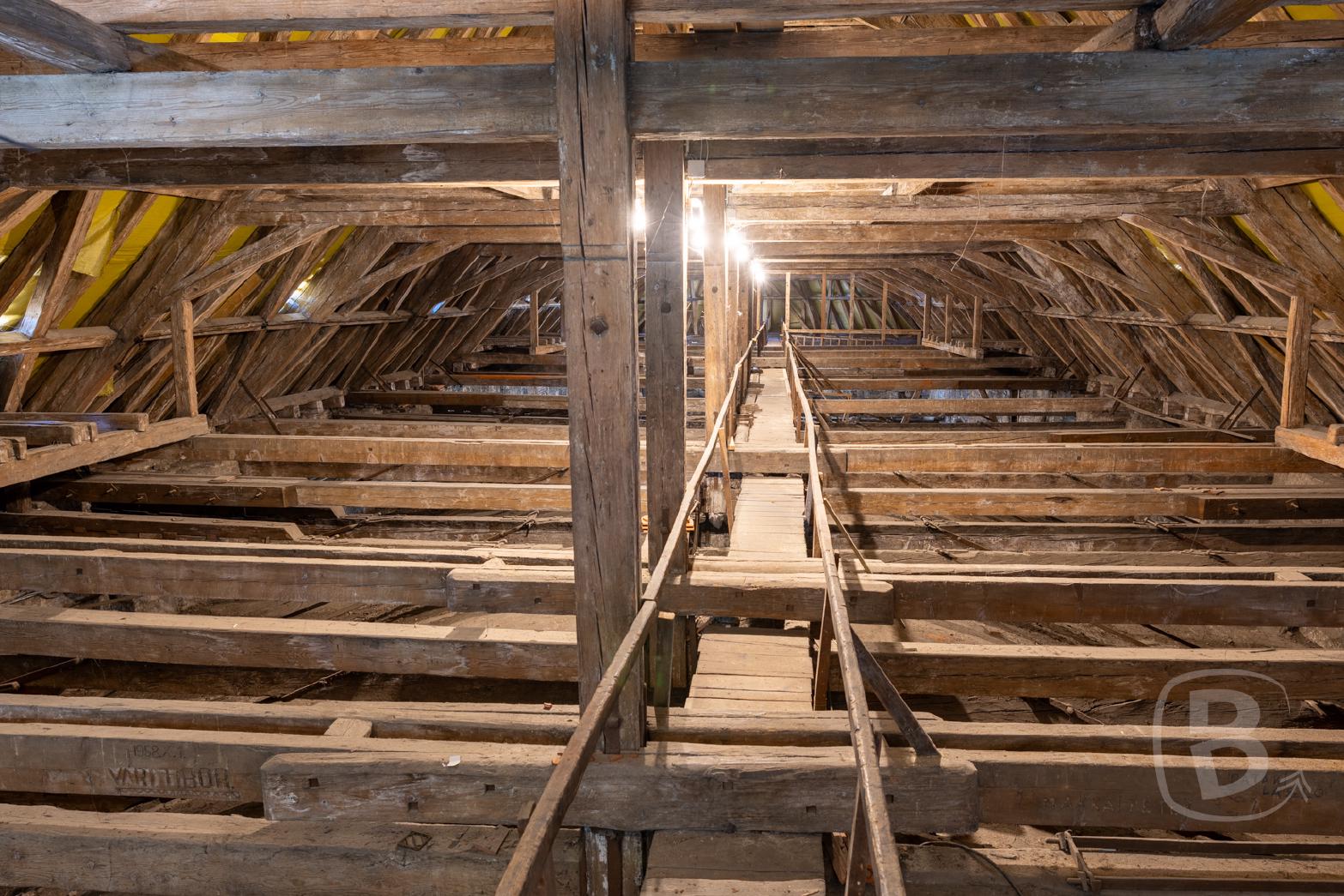 Am Eingang werden wir wiedererkannt und können direkt zum Turmeingang gehen. Auch hier gibt es einen Fahrstuhl. Scheint heute unser Glückstag zu sein. Ich mache Fotos vom Dachstuhl und der Freiheitsbrücke.