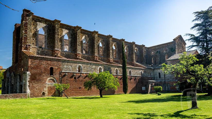 Nach dem Frühstück geht es als erstes nach San Galgano. Hier befindet sich eine Klosterruine und eine Kirche.