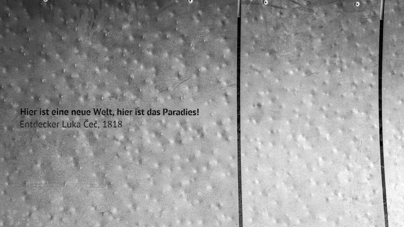 Die Bahn bringt uns zum 3,7 Km entfernten Startpunkt der Tour. Bereits 1872 wurde die Bahn in der Höhle eröffnet. Sie fährt heute mit batteriebetriebenen Zügen und auch durch den großen Tanzsaal. Dieser wird duch wunderschöne Kronleuchter aus Muranoglas beleuchtet.