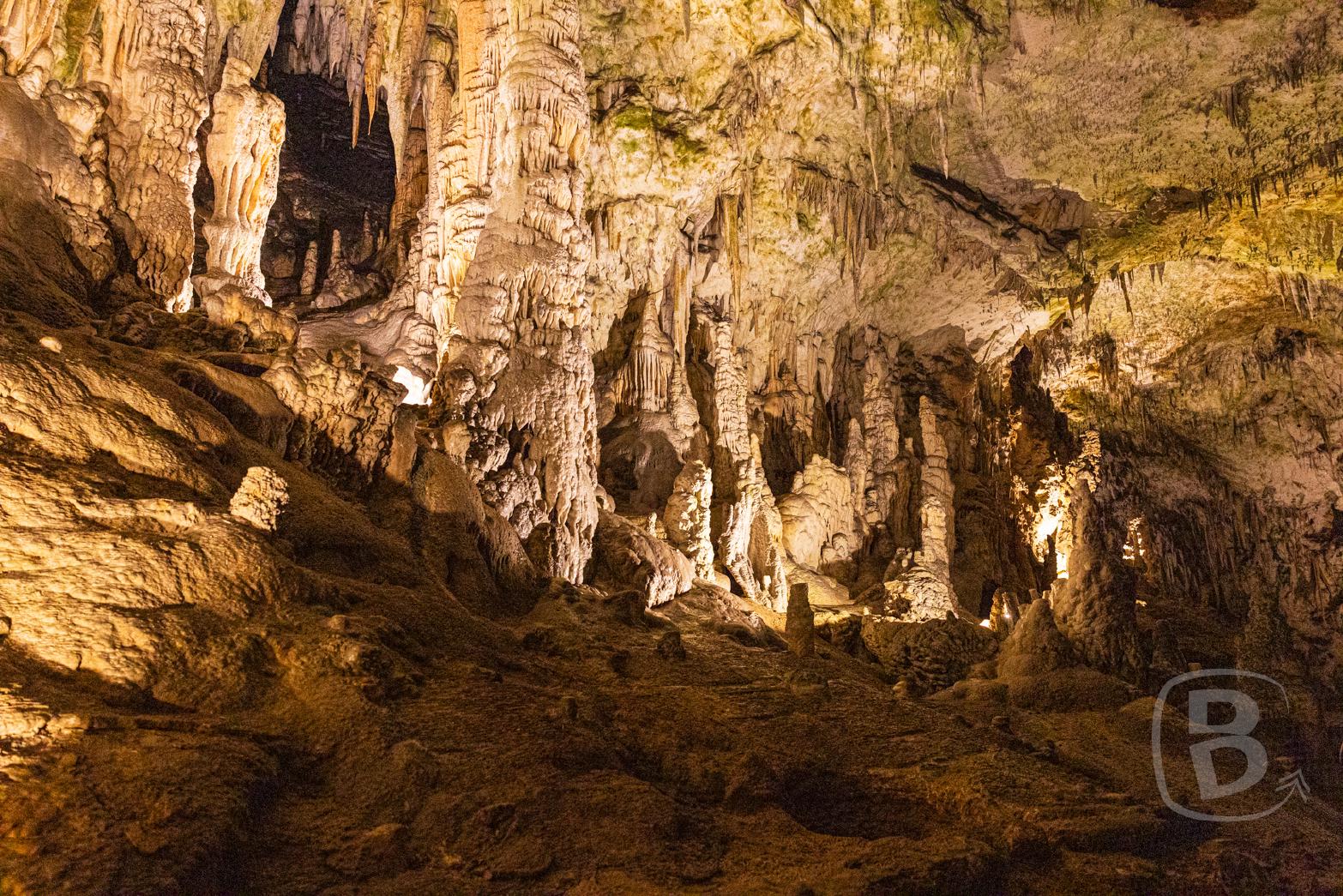 Da wir hinter der Gruppe laufen, bekommen wir von den Erklärungen der Führerin nicht alles mit. Stört uns diesmal aber auch nicht, wir genießen den Anblick, den die Natur hier geschaffen hat. Der touristische Teil der Höhle ist komplett beleuchtet.
