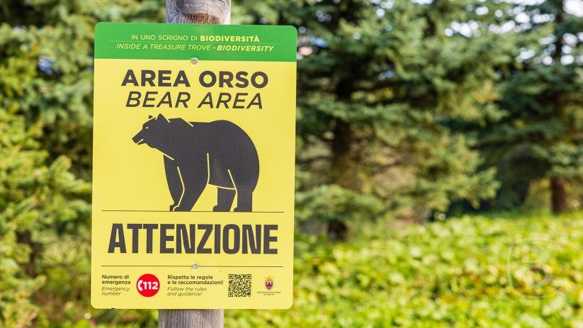 Die ganze Zeit laufen wir durch Parco del Respiro. Die Idee dahinter kommt aus Japan. Hier im Parco del Respiro soll man im Wald badend, die Bäume umarmen und positive Energie aufnehmen. Hier stehen zwei spezielle Baumarten: Große Buchen und große Fichten.