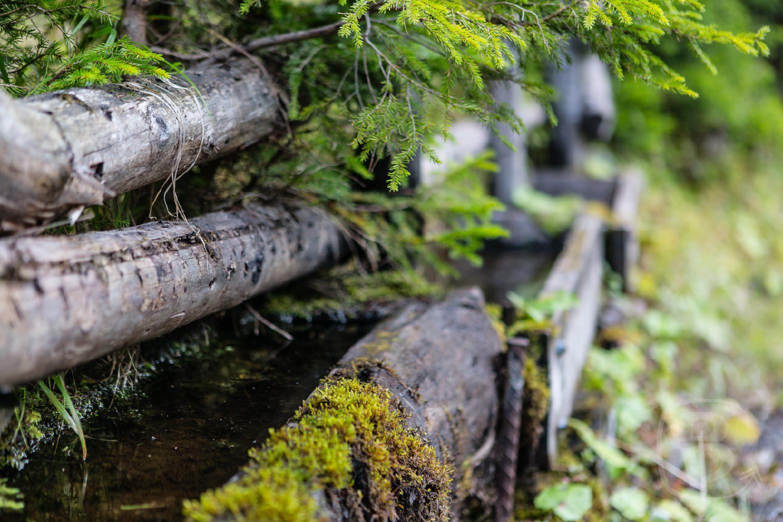 Die Abkürzung wollen wir aber nicht auch noch zurücklaufen, also nehmen wir den Forstweg. Ist zwar wesentlich länger, dauert aber auch nicht länger und ist kniefreundlicher. An der Abzweigung angekommen, auf dem Hinweg haben wir die Beschilderung schon bewundert, biegen wir dann scharf rechts ab und gehen Richtung Wasserfall.