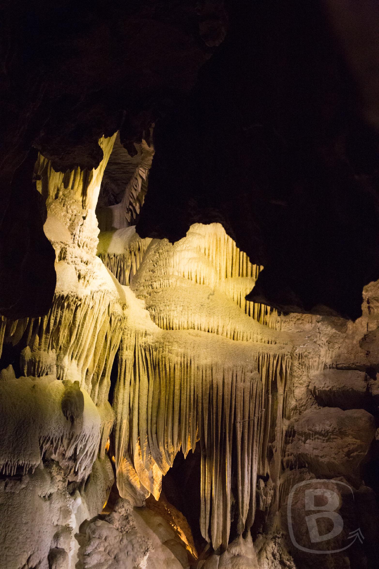 Da wir ja bezahlt haben, geht das Tor für uns auf. Jetzt betreten wir die Höhle und der Guide schaltet die ersten Lichter ein. Wow. Was für ein Anblick.