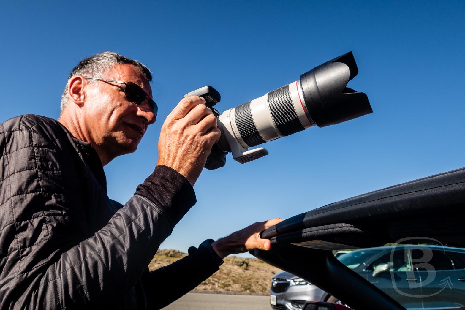 Eine halbe Stunde später überquert eine Herde Bisons unseren Highway. Schatzi ist etwas nervös, da sie sehr dicht an das Auto kommen. Die Bullen schauen auch nicht gerade freundlich. 30 Minuten brauchen wir, um durch die Herde zu fahren. Einerseits fahre ich sehr vorsichtig, anderseits machen wir auch eine Menge Fotos (wie übrigens alle).