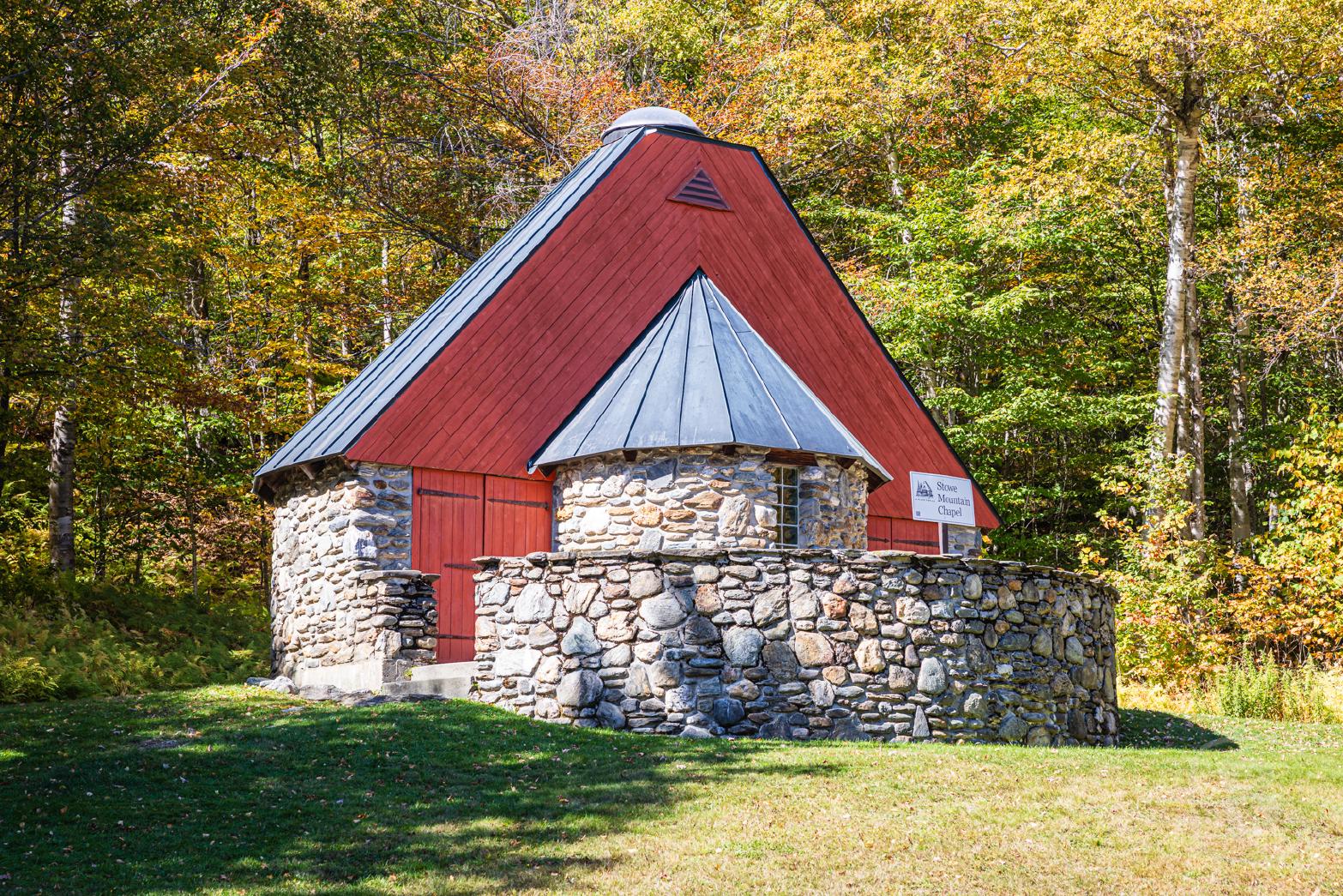 Auf der Runterfahrt halten wir noch kurz an der Stowe Mountain Chapel. Wie nicht anders erwartet, sind die Türen verschlossen.