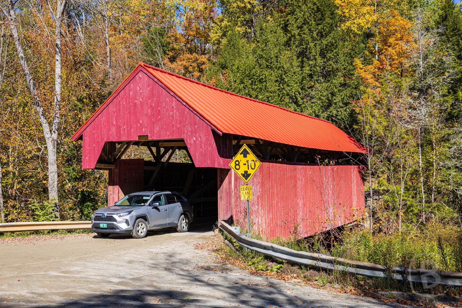 Jetzt fahren wir in Richtung Red Covered Bridge. Dies ist von drei Covered Bridges in Stowe die man gesehen haben sollte.