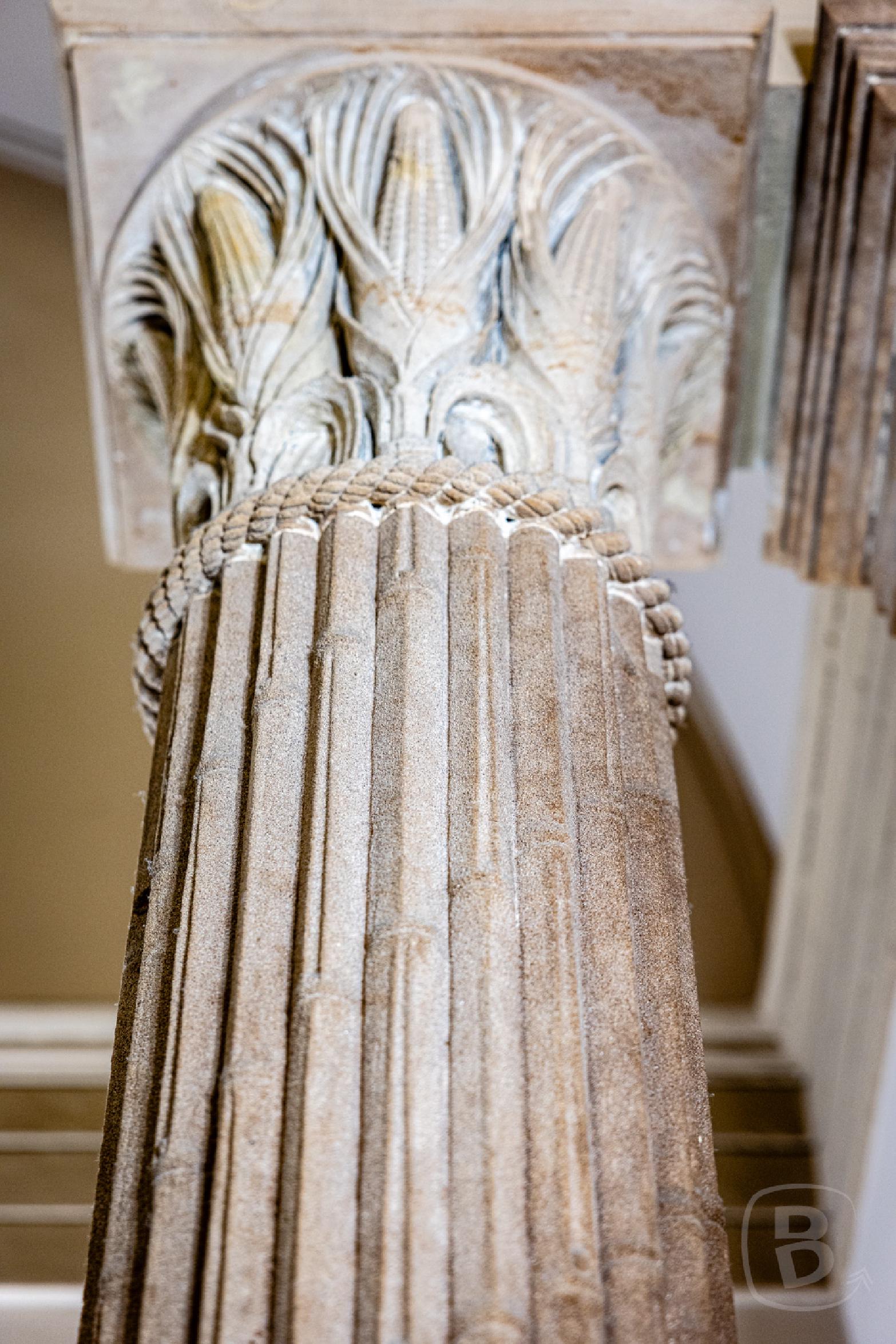 Auf dem Weg zum alten Sitzungssaal des Supreme Courts weist uns der Guide noch auf die Säulenkapitelle hin, die hier als Maiskolben ausgebildet sind.